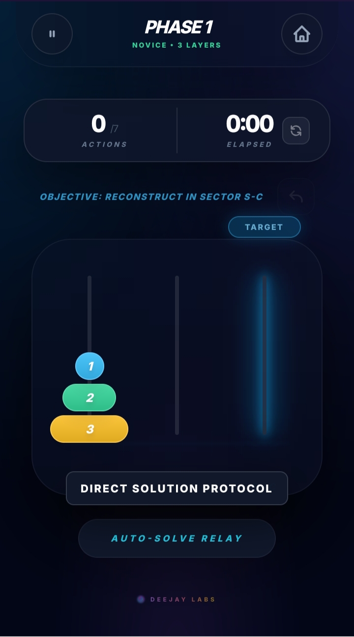 DiskShift is a clean, logic-driven puzzle game inspired by the classic Tower of Hanoi problem, designed to challenge your spatial reasoning and patience.